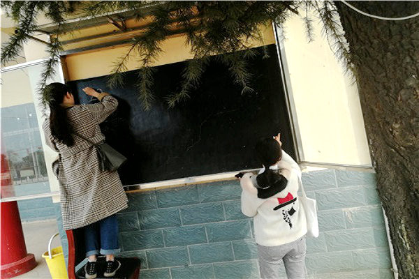经过充分的准备,村主任助理们开始了板报工作。查阅资料、文字排版、绘画上色……同学们分工明确,精细又高效地写着、画着。经过一个多小时的努力之后,他们圆满地完成了本次板报宣传任务。