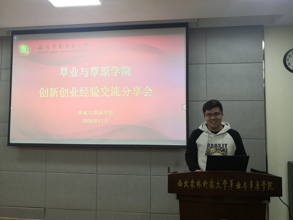 最后,由“褪黑素调控低温/干旱胁迫下多年生黑麦草生长和活性氧的清除的机制”队长尉欣荣同学分享了她的创新比赛经验,她谈到对于创新比赛而言,最重要的是手里有文章。创新较创业有较大的区别,它是一个漫长的过程,需要同学们在大量的实验基础之上进行文章撰写,然后查询相关资料,做足充分准备。在此过程中,不仅可以对文章有深度解析,更能发扬同学们勇敢拼搏的精神,为之后的科研路奠定良好的基础。