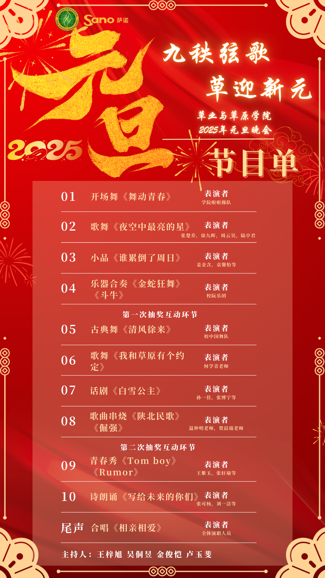 为了强化榜样引领,丰富师生校园文化生活,凝聚奋进力量,学院定于12月23日(星期一)19:00,在南校区绣山活动中心大厅举办“英国上市365官网2024年学生表彰大会暨2025年元旦晚会”(节目单附后),晚会设有互动抽奖环节,敬请广大师生按时参加。