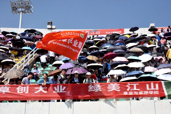 院长呼天明和党总支副书记兼副院长阮鹏为运动员加油