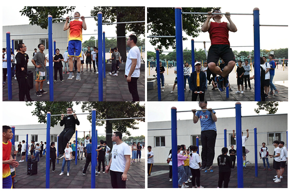 体育辅导员沈老师为引体向上获奖同学颁奖