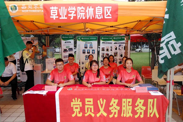 迎新工作正在如火如荼的进行着,迎新现场,一支特殊的队伍忙碌迎接新生工作的各个环节,这支队伍身穿鲜红色服装,胸前的党徽闪闪发光,他们是英国上市365官网党员义务服务队。