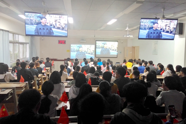 相约一起观看阅兵,为祖国点赞。10月1日上午八号教学楼8106教室不断响起一次次掌声,教室里挤满了学生,草业学子正在共同观看庆祝新中国成立70周年大阅兵直播。整齐的分列式、威严的军姿、响亮的口号、威武的战车……展现出新中国的强大,每位同学都聚精会神生怕错过每一个镜头,一次次掌声是对军人的礼赞,更是为祖国而自豪。阅兵结束全场起立再一次雷鸣般掌声响起,爱国热情再一次升级。学生表达着自己观看阅兵的感受,纷纷为祖国点赞,并立志为国贡献自己的力量,不负时代重托。