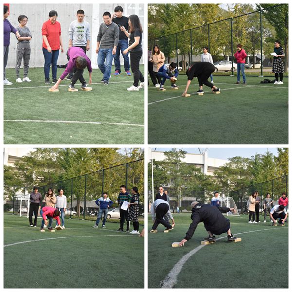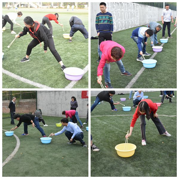 趣味运动会共设置了“女教工50米三人绑腿跑”、“袋鼠跳接力”、“摸石头过河”、“一分钟跳绳”和“筷子夹乒乓球接力”5项集体项目。学院教师走出办公室,聚在操场,组成三小组,以饱满的精神状态、拼搏团结的集体意识认真参与每一项项目,在舒适的季节里尽情展示运动风采。运动会气氛热烈,到处充满了欢声笑语。最终,第二小组以3项第一的成绩获得了趣味运动会优秀组。